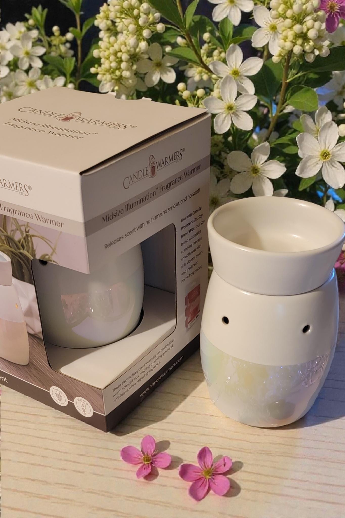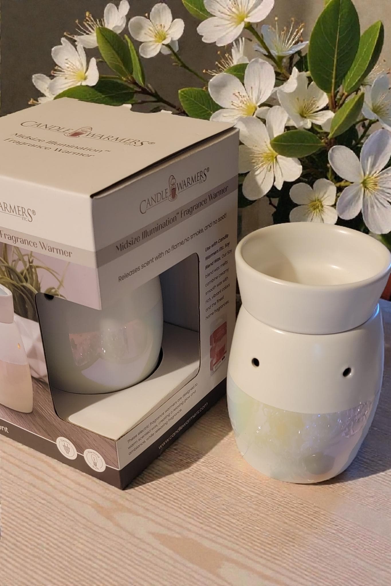 The Midsize Illumination from Candle Warmers etc.. is a slightly smaller and more economical warmer. A perfect fit for cozier spaces in your home, this decorative fragrance warmer safely warms