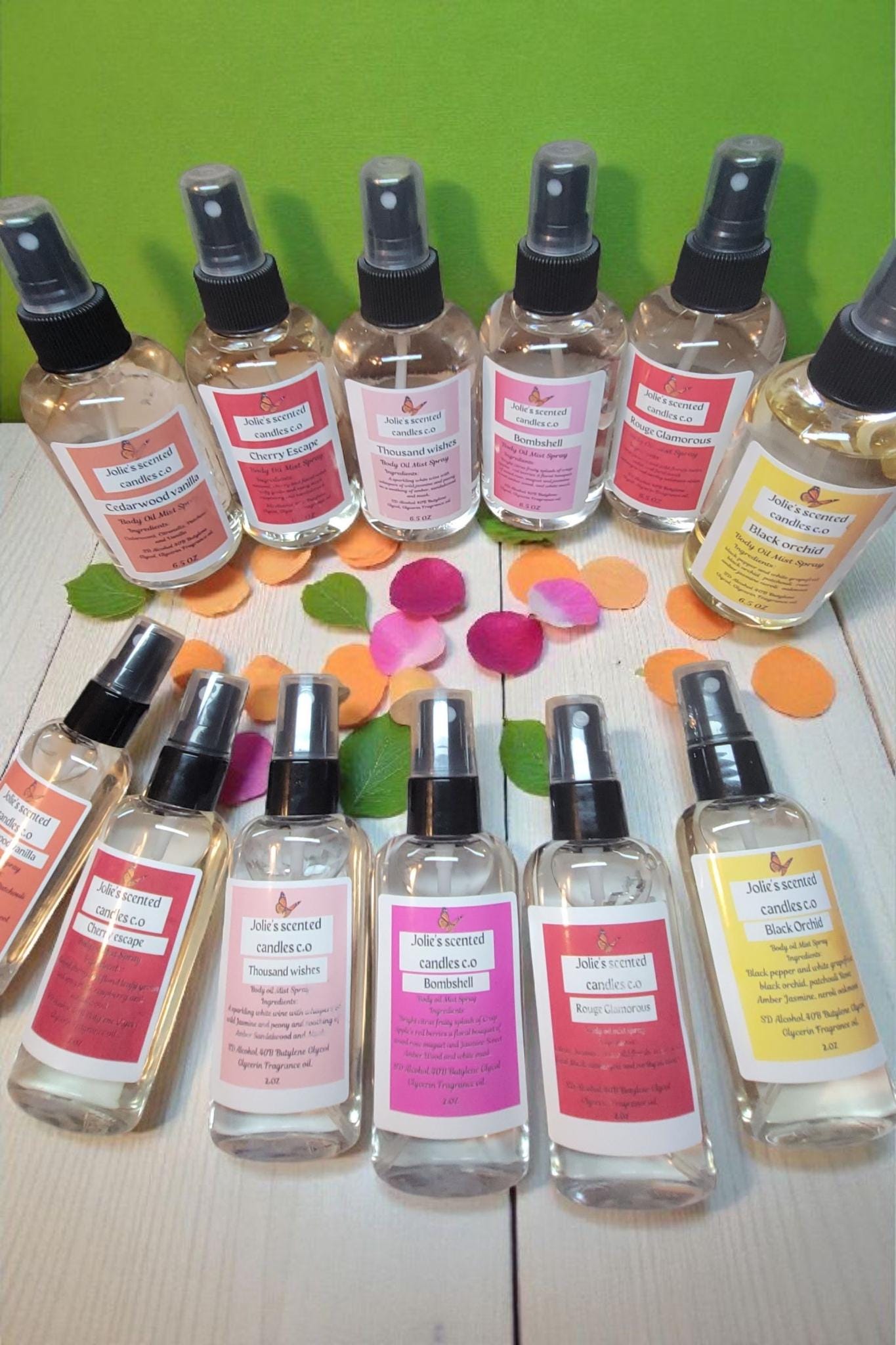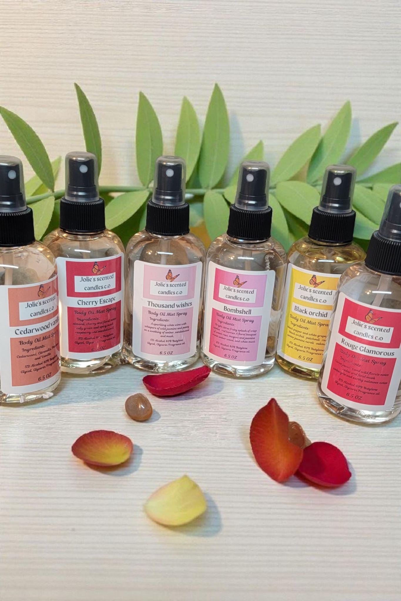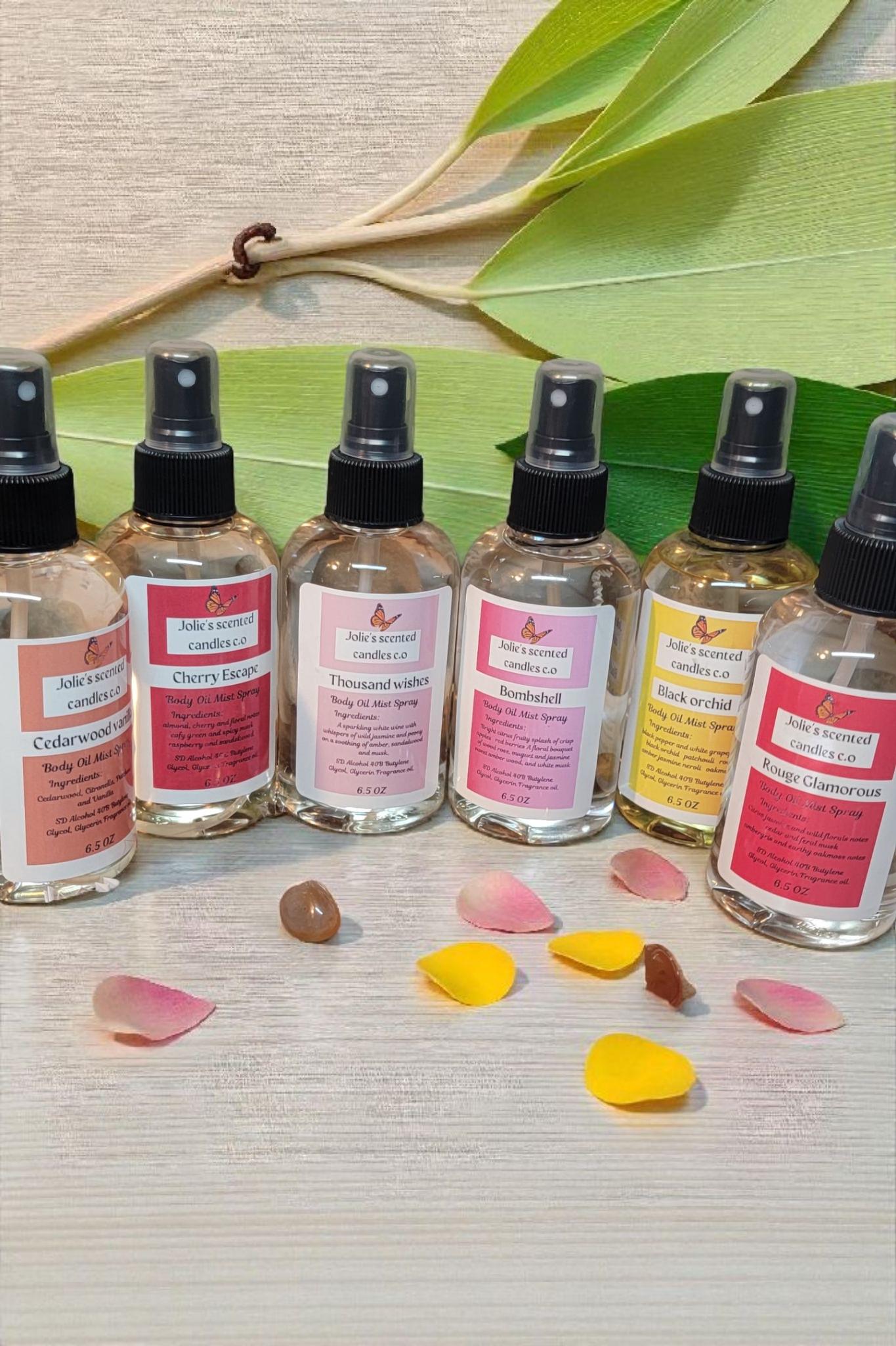We take pride in using high-quality ingredients in our room sprays. Each spray is made with a blend of premium fragrance oils and natural components to provide a safe and effective way to refresh your space. Our formulations are free from harsh chemicals, making them suitable for any room in your home.