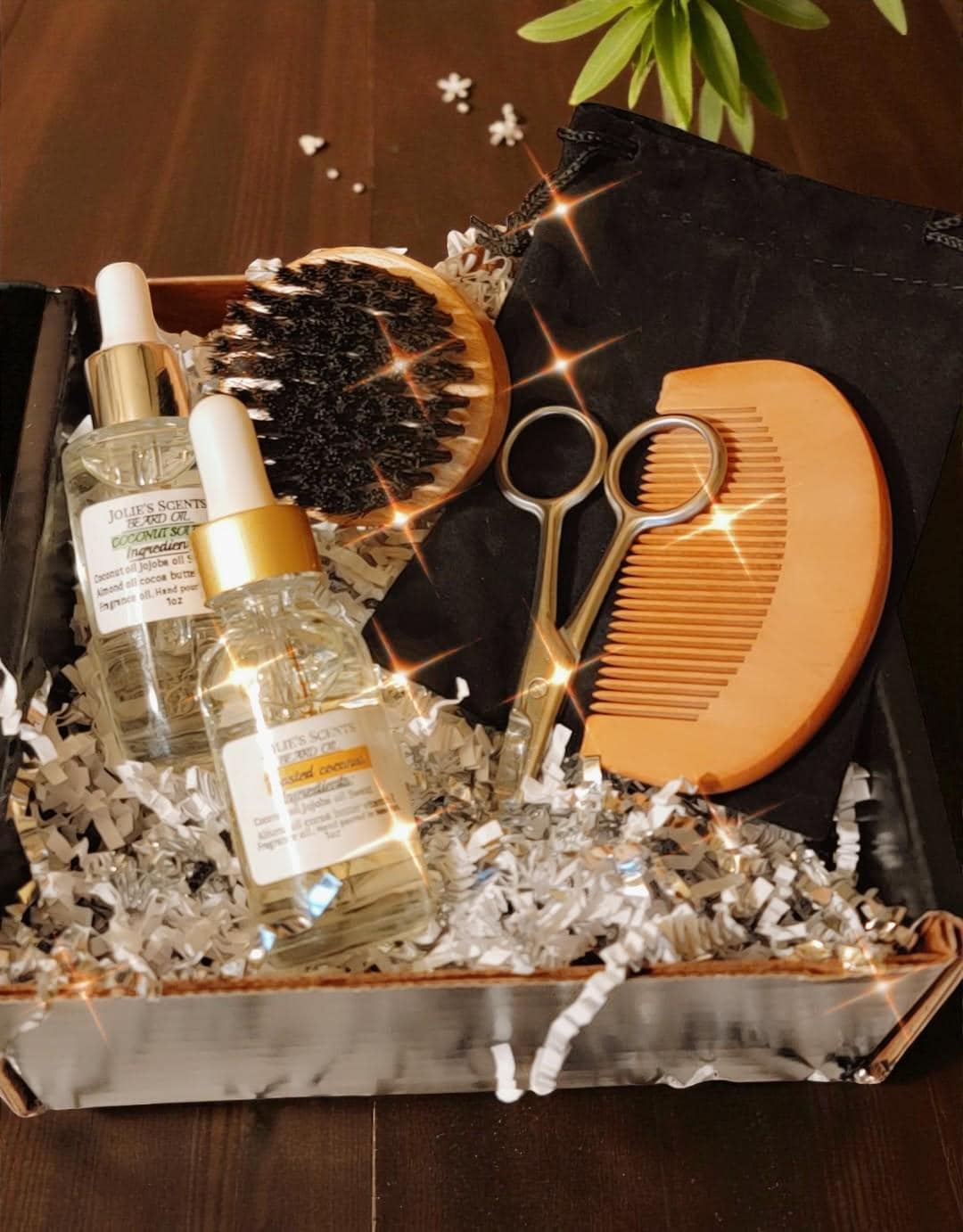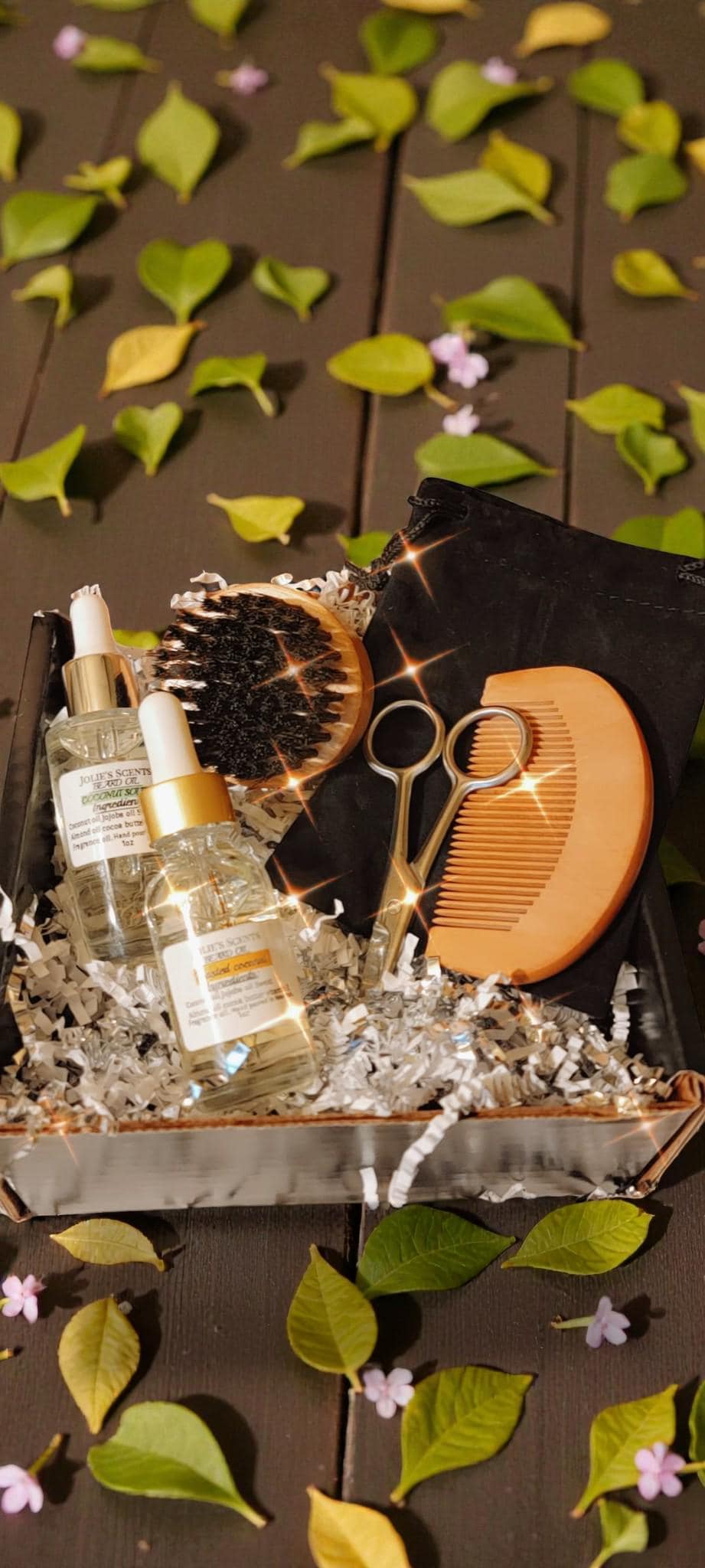 $52 Gift box: 3 beard oils Comb. Brush and scissors