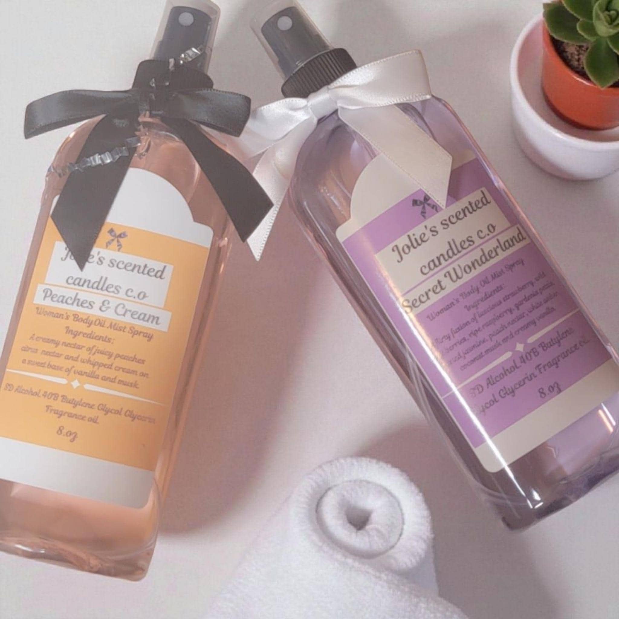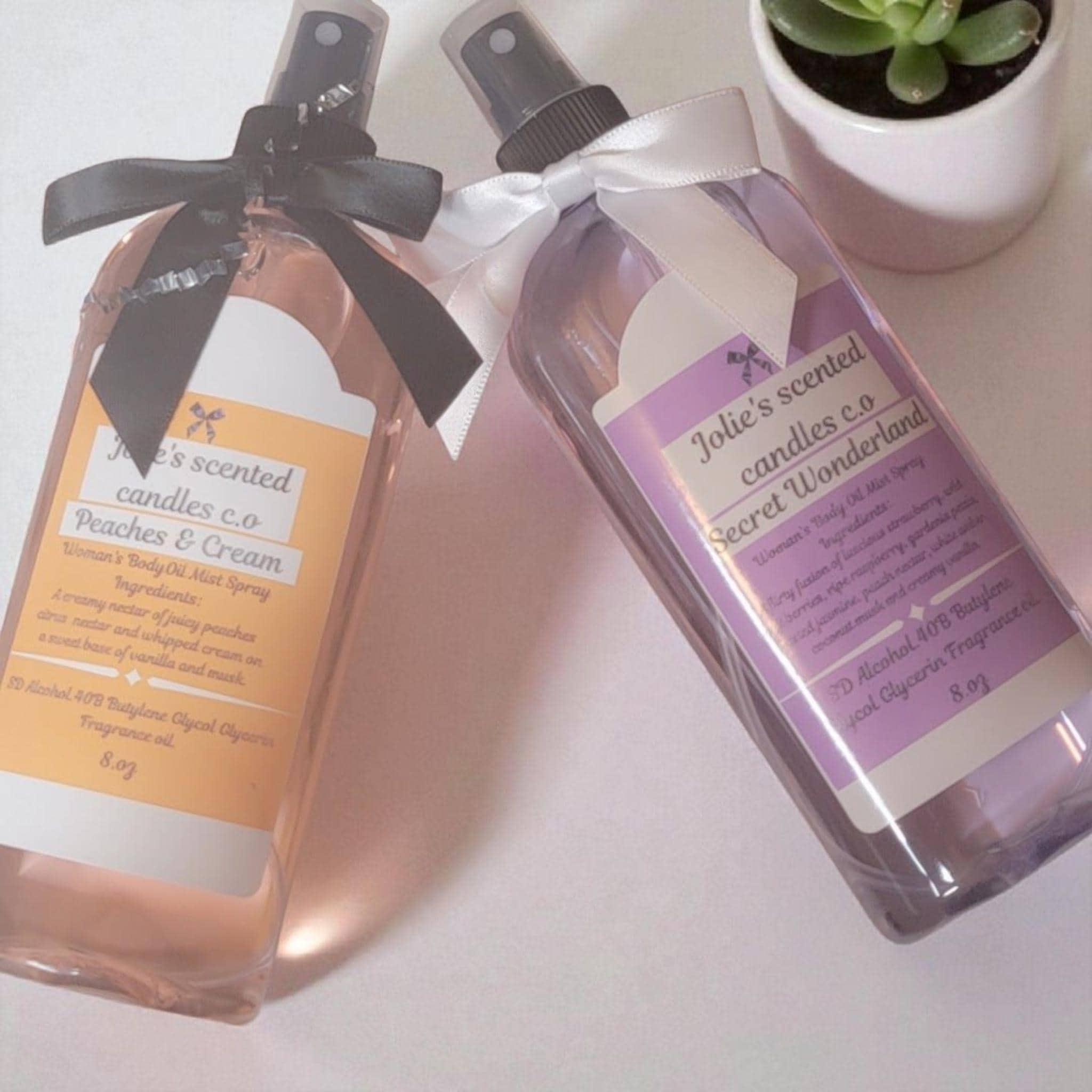 1... Our body Mist spray is a type of scented spray that is designed to be used on the body to provide a refreshing and uplifting scent. It is typically made with Small portion of alcohol, fragrance oil, and other ingredients such as glycerin and butylene glycol. Body mist spray is lighter than traditional perfume, making it ideal for everyday use, and can be sprayed on the skin, hair,