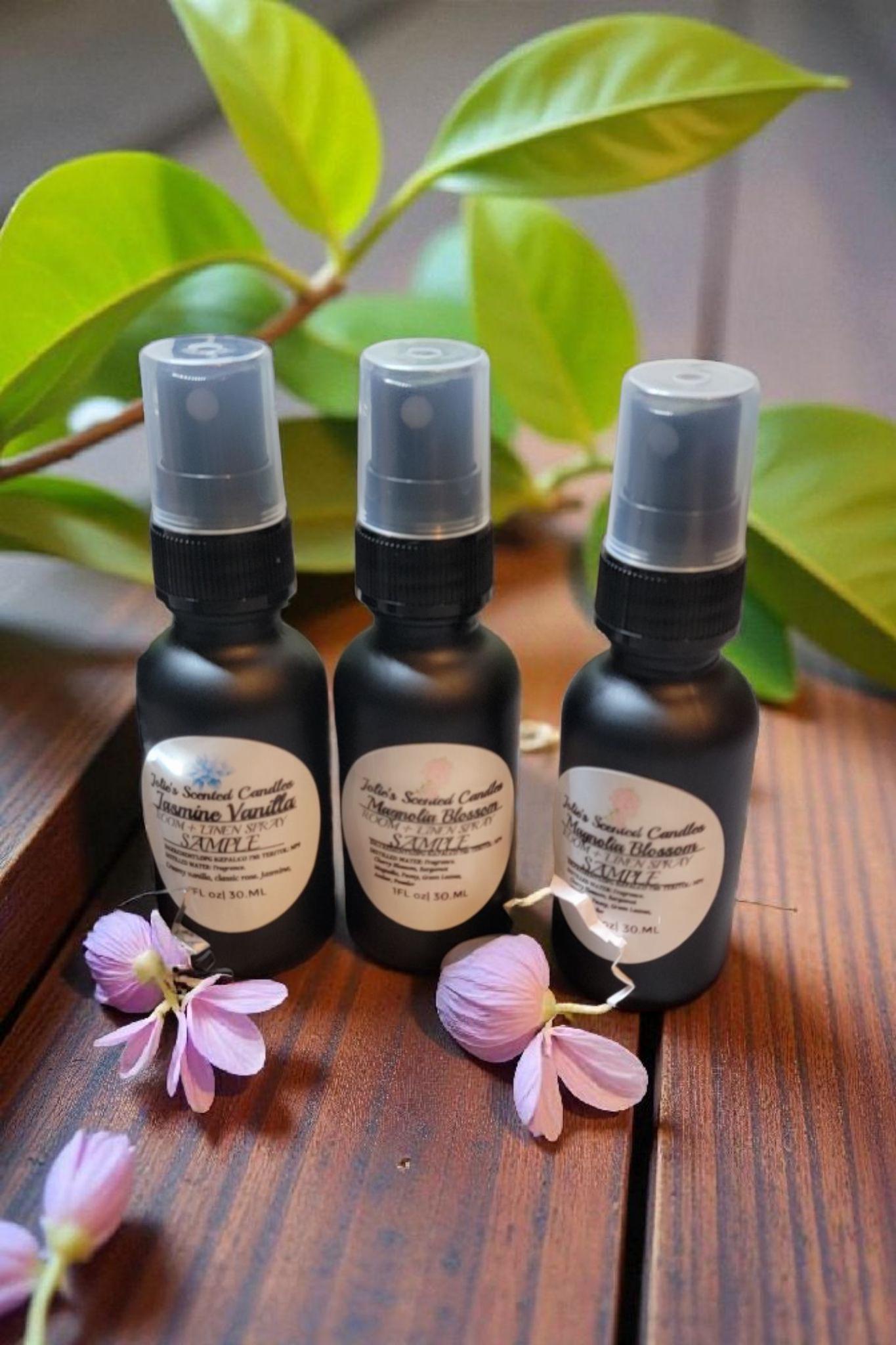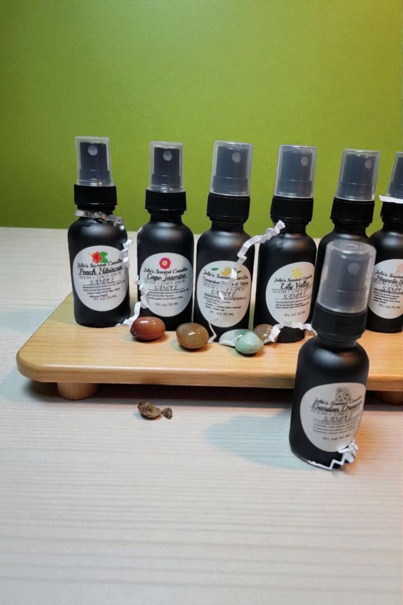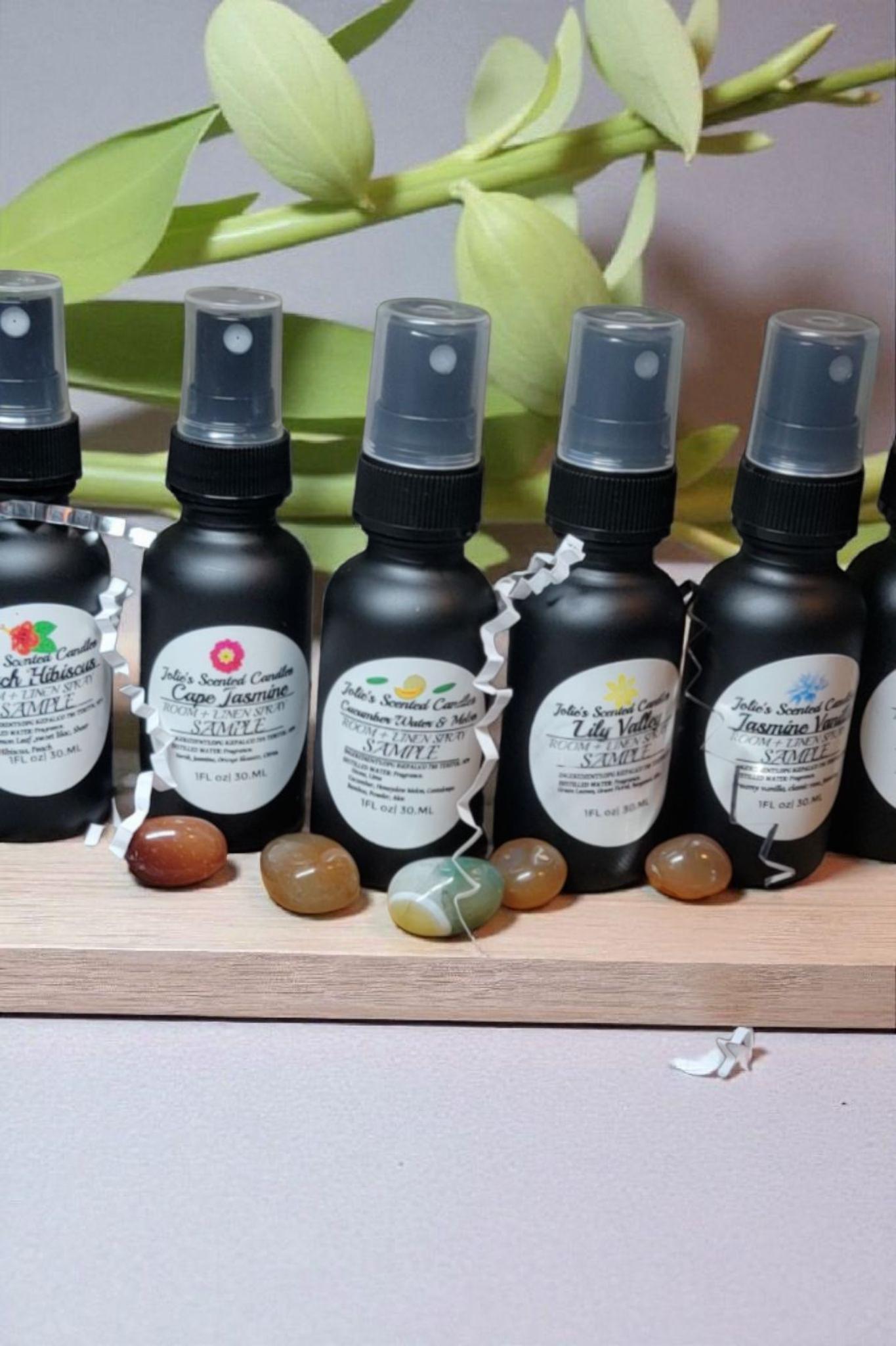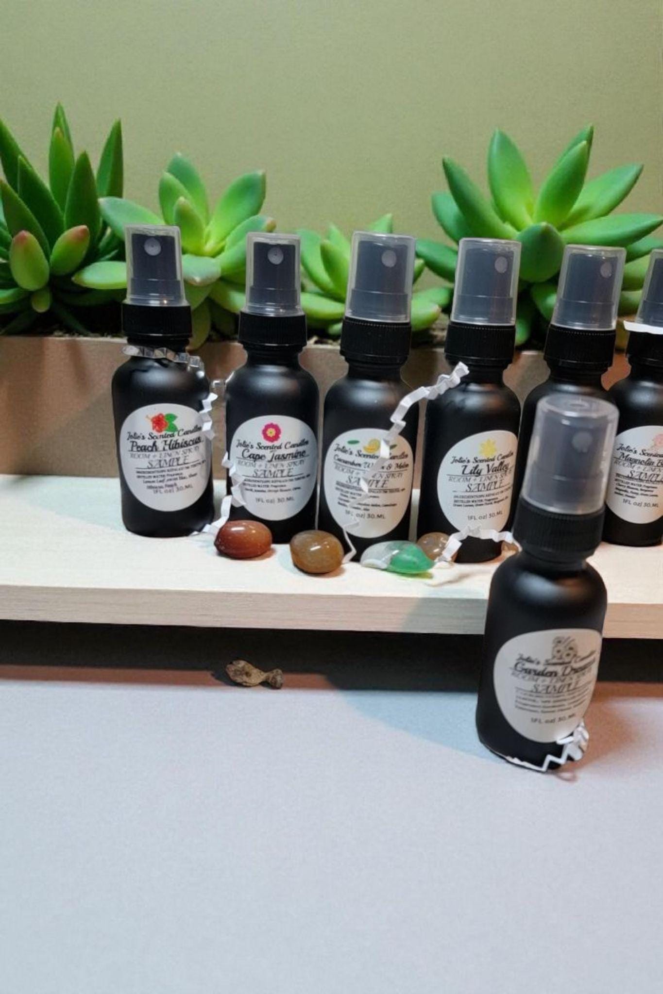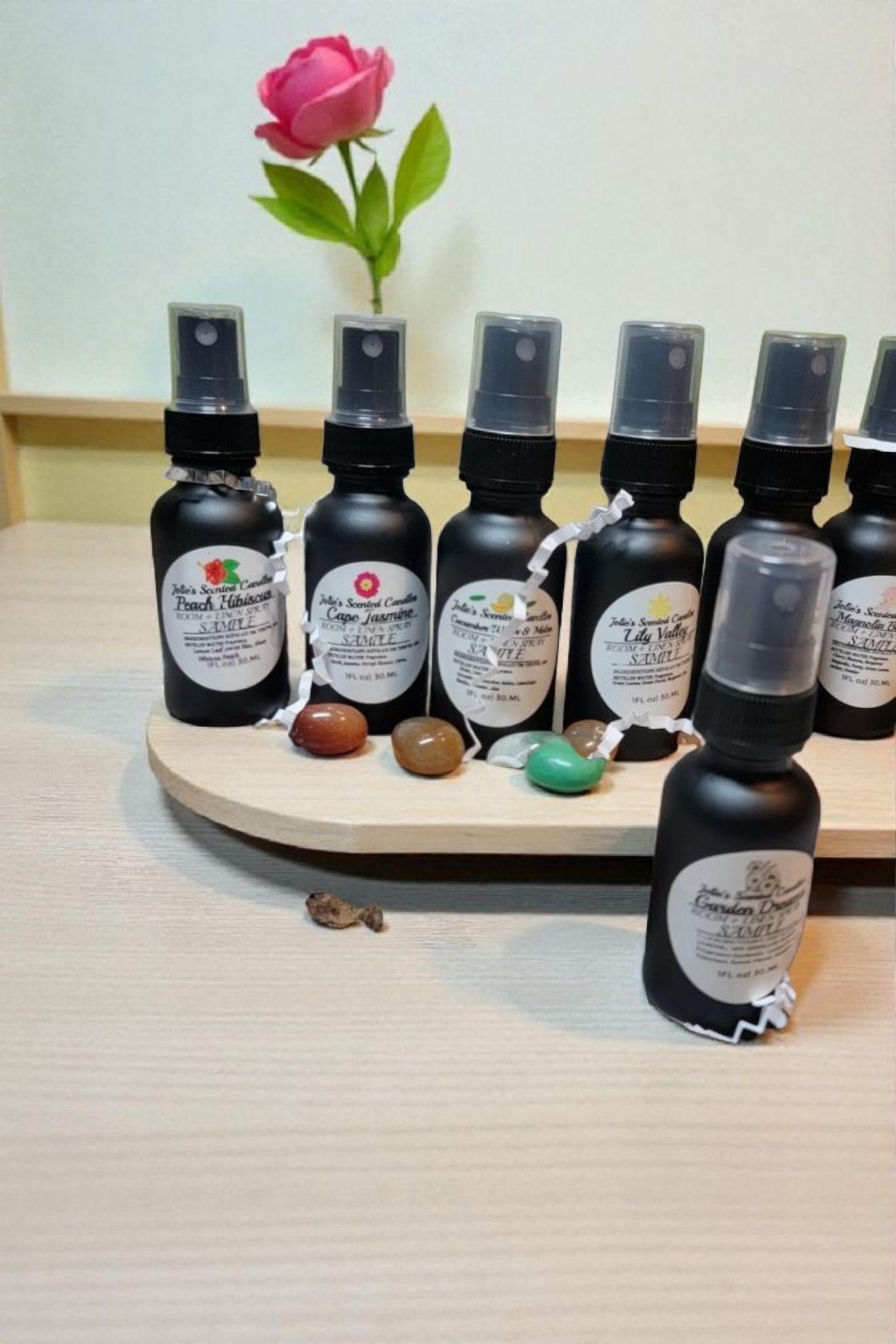 We take pride in using high-quality ingredients in our room sprays. Each spray is made with a blend of premium fragrance oils and natural components to provide a safe and effective way to refresh your space. Our formulations are free from harsh chemicals, making them suitable for any room in your home.